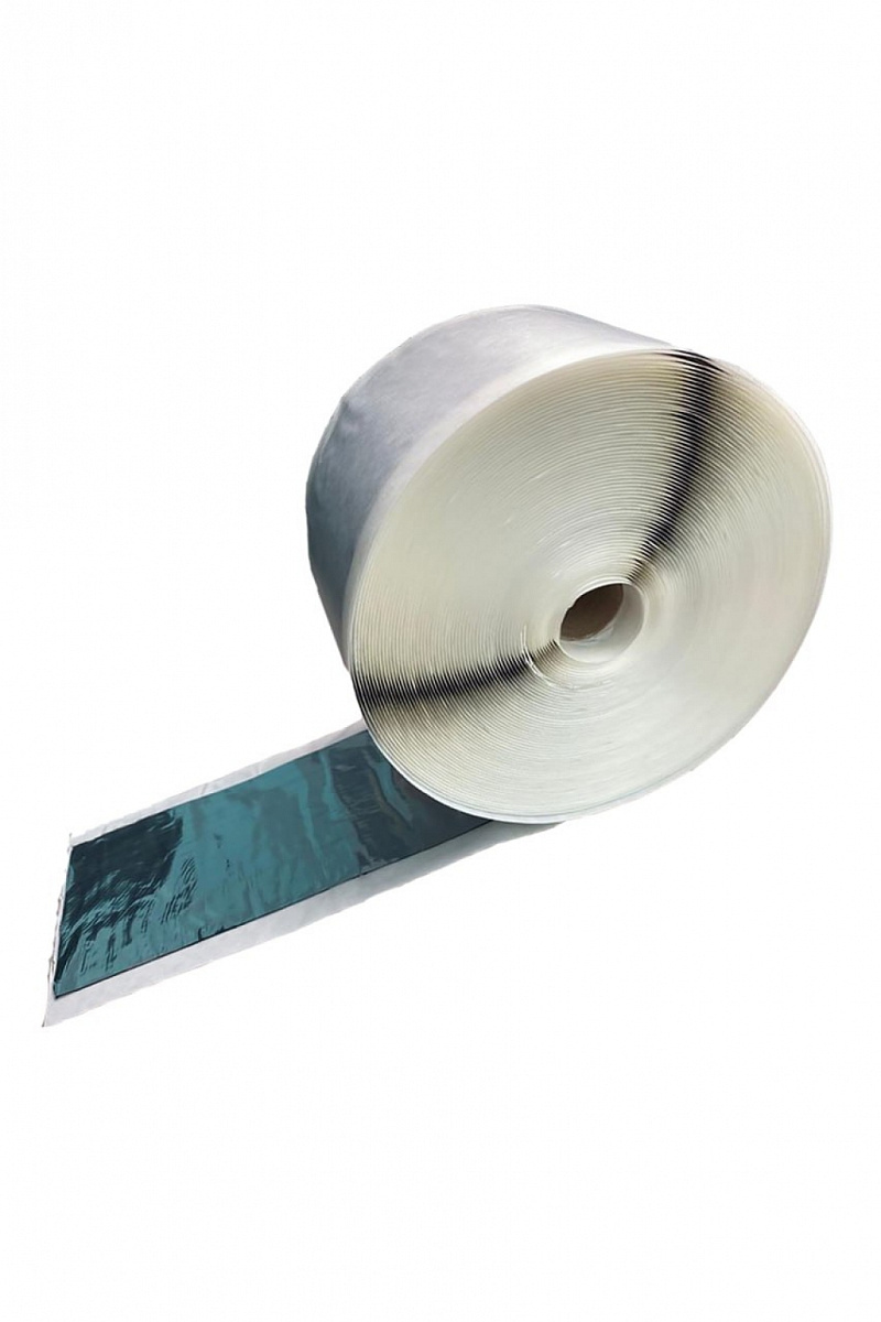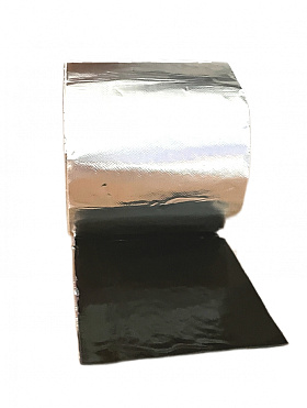 Гидроиозоляционная бутилкаучуковая самоклеящаяся лента, дублированная металлизированной (лавсановой) пленкой. Самоклеящийся слой защищен антиадгезионным материалом.